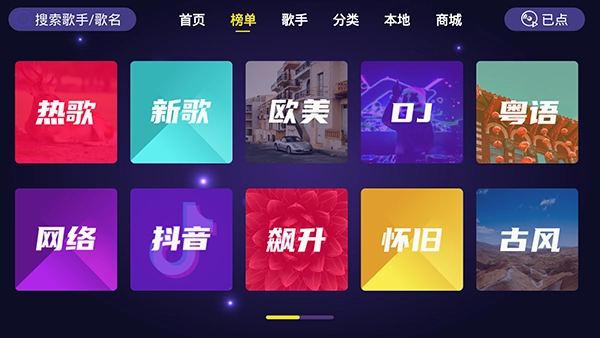 用户在网站上获取软件后,可快速将其安装到电视机上,接着打开应用程序,在主页进行点歌操作,该软件还会为用户推荐当下最热门的歌曲。