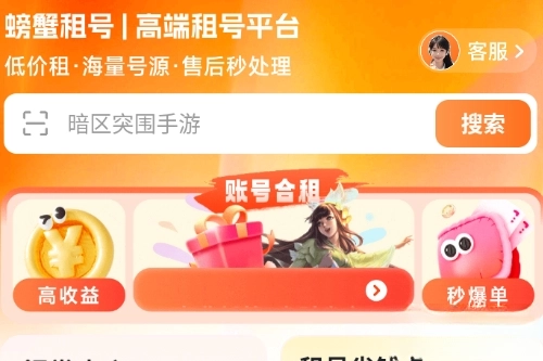 《螃蟹租号》作为专业的游戏租号平台,涵盖端游与高级账号领域,提供租号、买号、卖号等多元化服务。平台热门游戏账号品类丰富、应有尽有,支持极速上号与一键登录功能,更配备专属客服团队全年无休,保障用户体验安全又便捷。