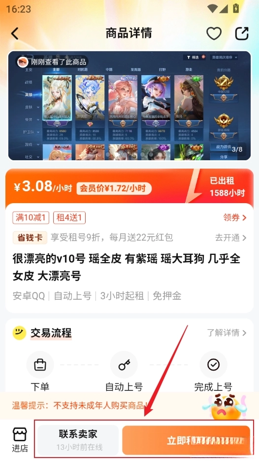 可联系卖家,也能点击立即租用