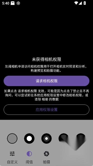 灰度与阈值相机预览及拍摄功能:支持实时预览并拍摄灰度图像与黑白二值阈值图像,允许自定义阈值区间及色彩参数。