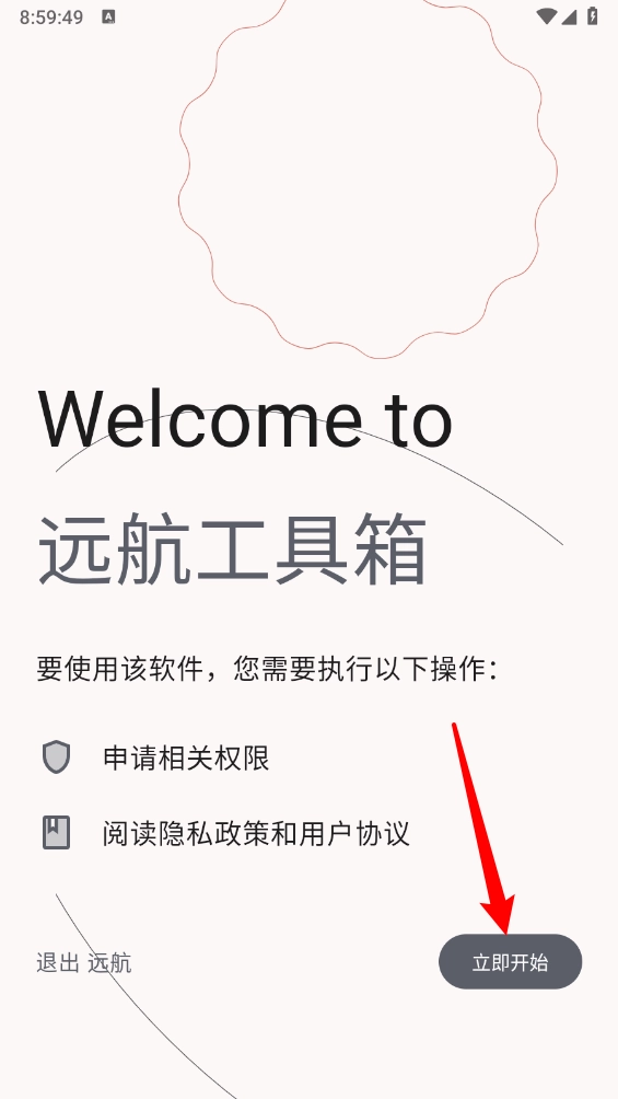 用户在安装,点击"立即开始"进入。