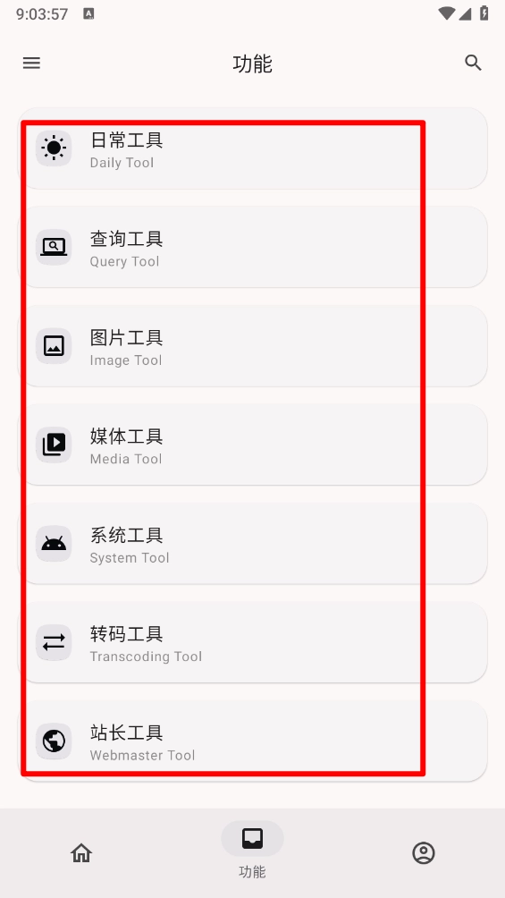 进入"功能"页面,选择所需收藏的功能板块。