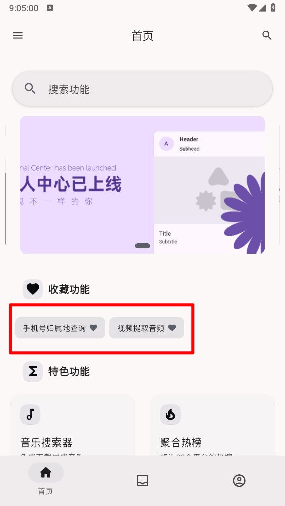 最后回到首页,在收藏功能区域就能查看已收藏的功能。