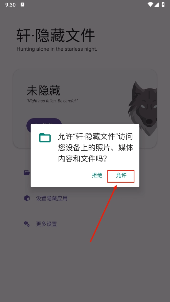先在本站安装轩隐藏文件,打开该软件,并允许相关权限以进行访问。