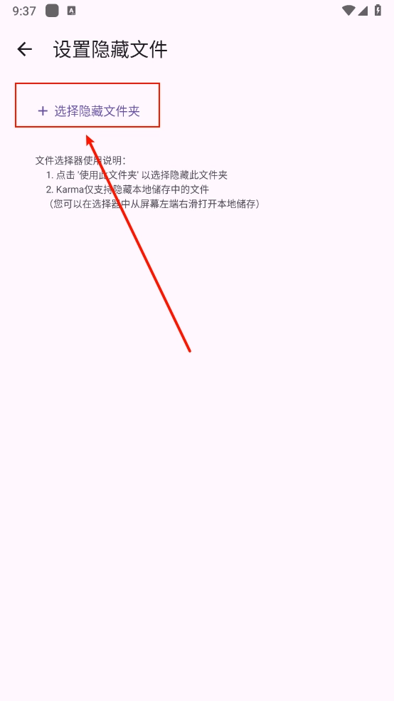 进入“设置隐藏文件”界面,点击“+”号按钮,上传想要隐藏的文件就可以了。