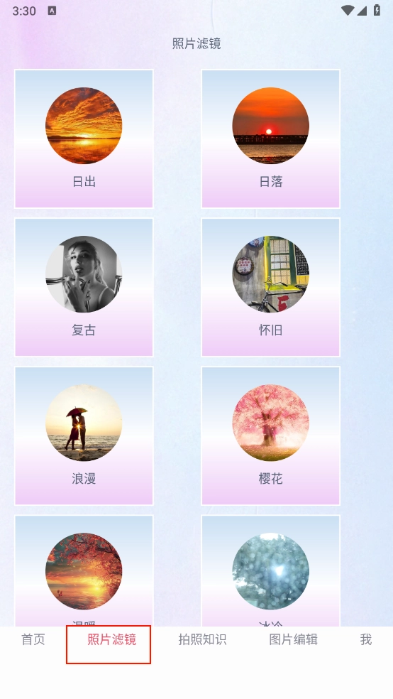 打开“照片滤镜”板块,这里有海量滤镜可供大家免费选择使用。