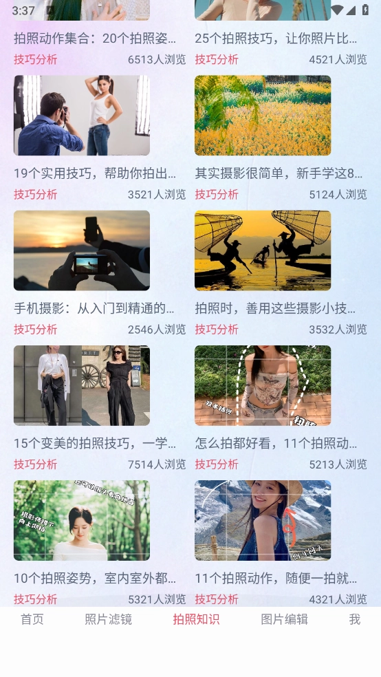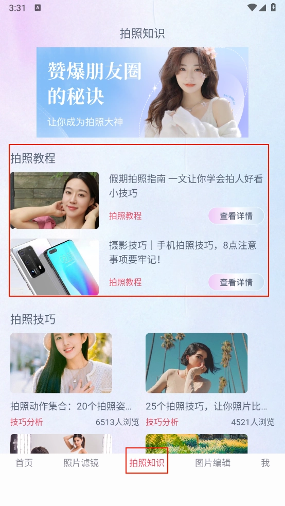在“拍照知识”板块,有各类拍照教程与技巧可供你学习。