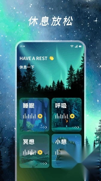 冥想引导:提供5分钟、10分钟、20分钟三种时长的呼吸练习,语音引导与背景音同步配合。