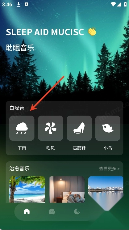 进入首页点击一个白噪音或音乐即可播放