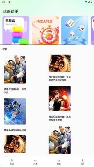 首页涵盖了最全面的游戏攻略内容,能帮助你掌握游戏操作技巧,此外还有真心话、大转盘等功能可供开启。