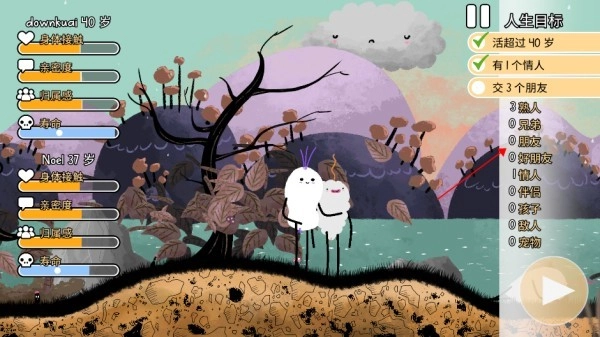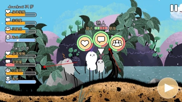 首先,你得先给角色起个名字才能进入游戏。进入后点击播放键开始,然后点击“行走”(也就是角色长大的过程),连续点击能让速度变快。要是想和其他萝卜互动,就点击除自己之外的萝卜就行。左边显示的是人物信息,那里的绿圈越大,互动成功的概率就越高;互动成功的话好感度加1,失败则减1。