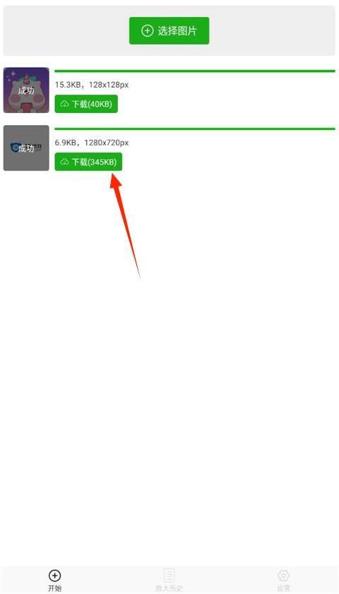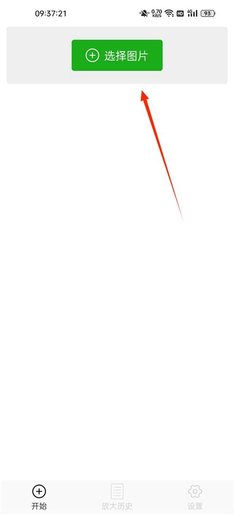 打开软件后,点击“选择图片”按钮,接着从手机相册中挑选一张需要放大的图片。