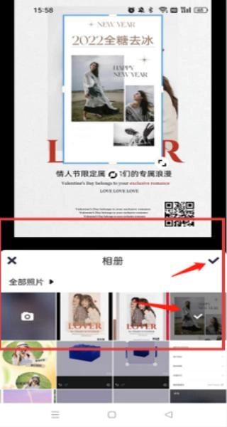 3、进行编辑操作时,能够打开相册,从中挑选出自己喜欢的图片来进行替换或者添加,整个操作过程十分简便。