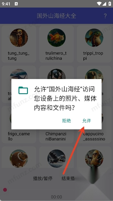 1、打开国外山海经点击允许授予软件权限