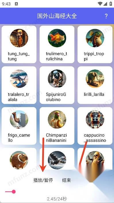 -一键播放魔性角色语音,支持循环/暂停;