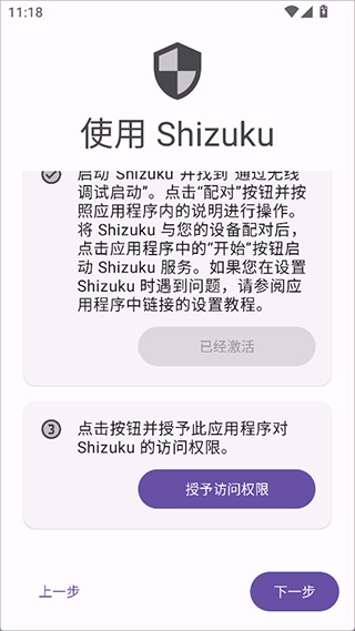 2、按照提示打开shizukui软件,接着点击【授予访问权限】按钮来继续操作。