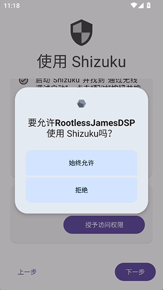 3、shizukui会申请获取ADB权限,以便软件能够完成激活流程。