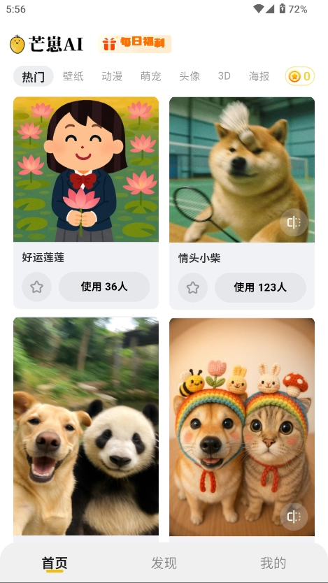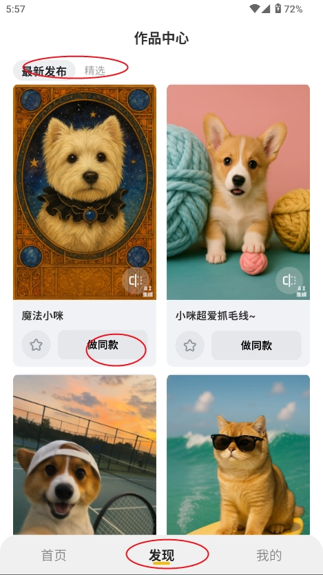 在发现页面,你能浏览到最新上线的模板,挑选出心仪的作品后,只需点击一下就能快速制作出同款内容。