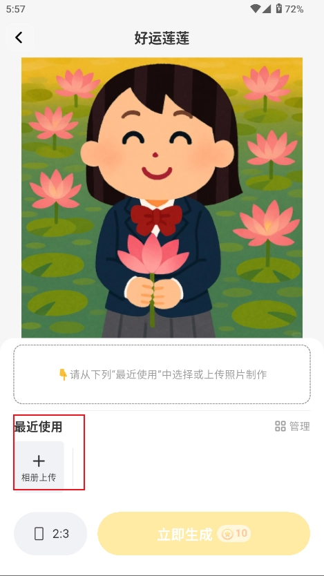 挑选你喜欢的模板并启用,进入后上传你的照片,点击立即生成就可以了。