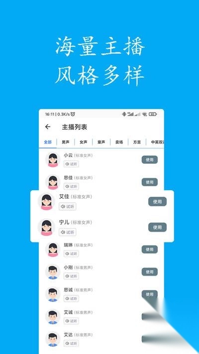 声宝是一款功能丰富且实用的工具类应用,用户能在其中获取到大量优质的配音资源。软件提供了丰富多样的配音服务,声线类型十分详细,能让用户轻松找到自己心仪的素材,各类声音资源都可供用户自由挑选。