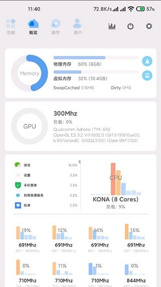 充电加速:尝试反叛你的系统内核,调整充电电流上限(在Nubia Z11上测试,低电量时起码可以提高50%的速度,并不会对所有设备有效)。如果没效,请确保充电器和数据线正常,并让本应用加入后台白名单避免加速服务被休眠