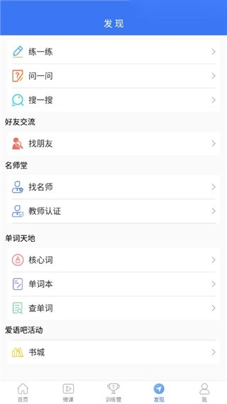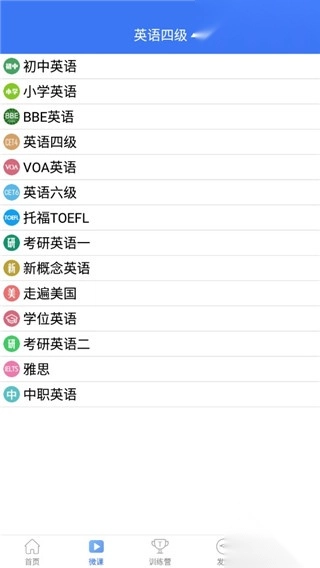 点击训练营,可以进行单词,口语听力等各项训练