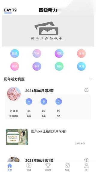在本站下载并安装英语四级听力应用后,进入软件首页即可查看历年听力真题。