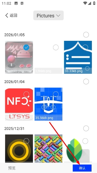 2、在图片选择页面,选中目标图片后点击【确认】按钮,即可进入单张压缩的编辑界面,在该界面中可以查看图片的格式、大小等相关信息。