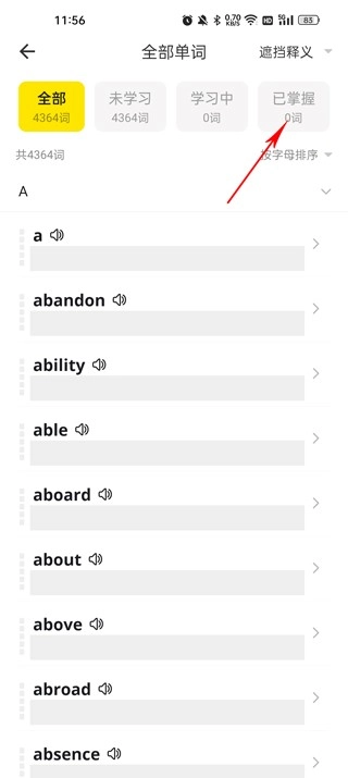 进入我的词库页面,点击全部单词;
