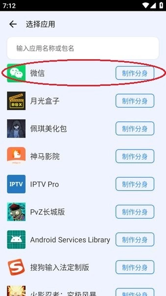 选择应用“微信分身”;