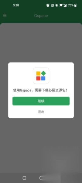 1、启动安卓版GSpace应用后,若出现谷歌三件套的提示,点击“继续”按钮即可;