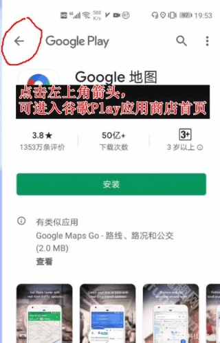 4、打开谷歌Play商店的办法:长按应用图标,选择“升级”选项,接着点击“返回”箭头,就能进入商店搜索并安装应用了。