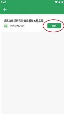 4、点击“开启”以授予电池优化权限,完成授权操作后就能正常使用了。