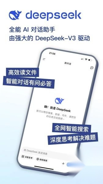 deelseek能精准把握用户的指令与需求,依托大数据模型生成自然语言,为用户提供个性化的对话交流与答疑服务。用户只需在对话框中输入想要表达的内容,就能获取软件AI的回复,使用门槛极低,各年龄段用户均可安心使用。此外,用户还可根据不同的使用场景选择【深度思考】或【联网搜索】模式,以便软件提供更精准的服务。