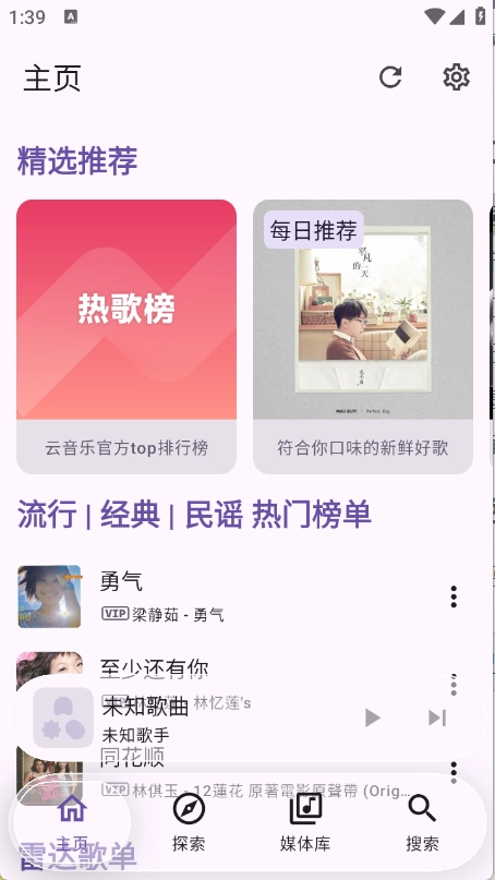 主题为用户推荐了热门的音乐资源。