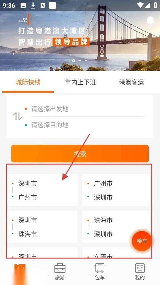 覆盖全省尤其是珠三角区域的城际旅游线路包含:自营线路、合作运营线路以及客运站代售线路。