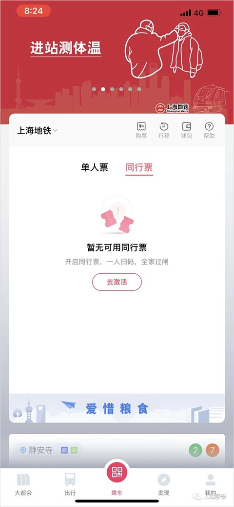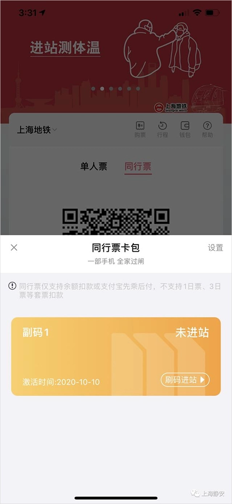 进入乘车页面后,把二维码从“单人票”切换成“同行票”。