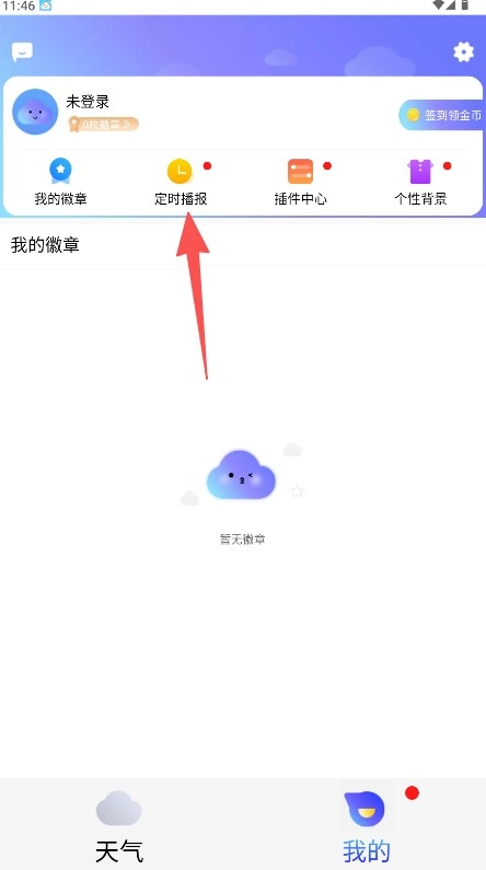 2、进入个人中心后,找到“定时播报”功能入口并点击,即可进入对应的设置界面。