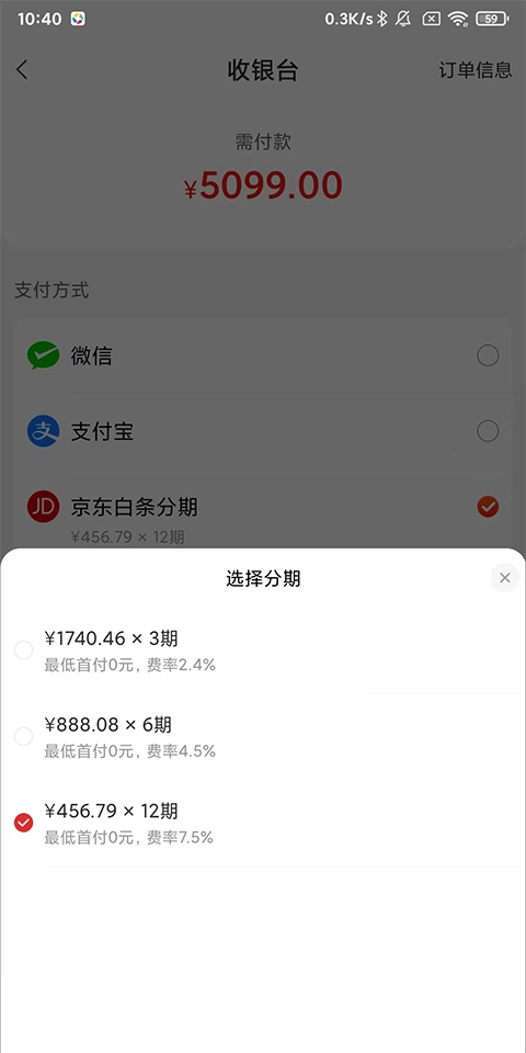 点击下方小字还可以选择分期的期数。