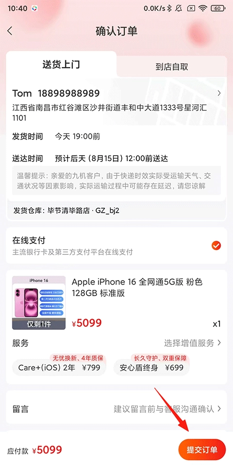 我们凭借门店广泛覆盖的优势,为客户提供免费且极速的配送服务。只要您的配送地址处于九机门店3公里(直线距离)范围内,并且该门店有现货,我们就承诺在1小时内把您购买的商品送到您手中。