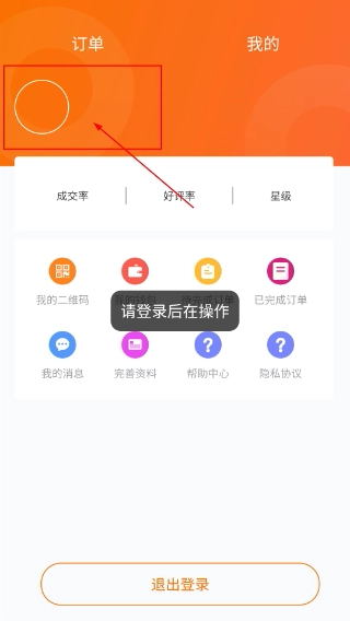2、进入【我的】页面后,点击功能区域会弹出【请登录后再操作】的提示,必须完成登录才能使用【我的二维码】等相关功能。