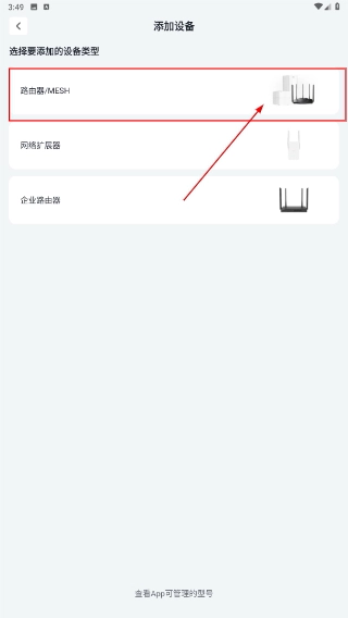 3、进入添加设备页面后,挑选想要添加的设备类型(例如“路由器-MESH”),选好之后继续进行设备添加的后续流程。