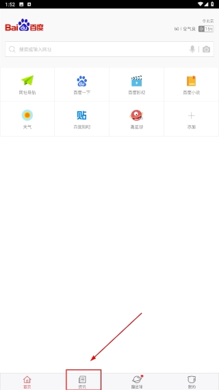 2、在主界面底部,选择【资讯】标签,切换至资讯聚合页面,可查看各类热点、新闻内容。