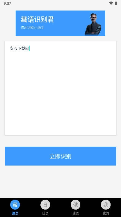藏语识别君是一款非常好用的手机识别翻译工具,很多去藏区旅游的用户都会使用这个工具,通过这个工具你可以翻译识别各种藏语,藏语可以翻译成为汉语等等!