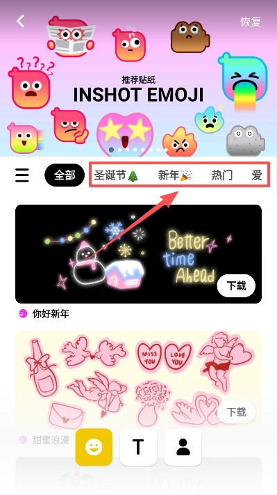 进入贴纸菜单