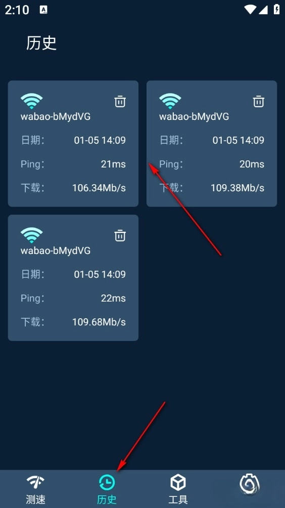 【查看历史】方便查看测速历史,对比每次测速结果;