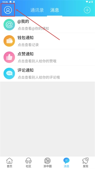在消息页面,点击左上角的个人图标,就能进入个人相关功能界面,查看通知类信息。