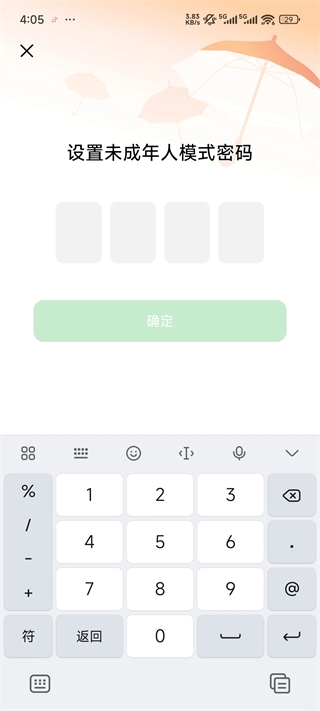 设置未成年人模式密码点击确定