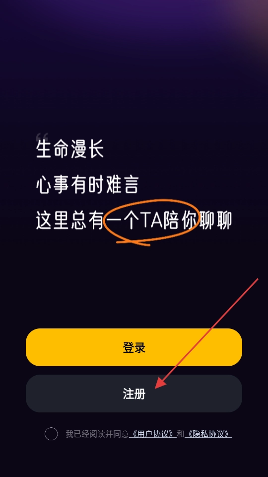 在登录注册界面,点击【注册】进入注册流程。