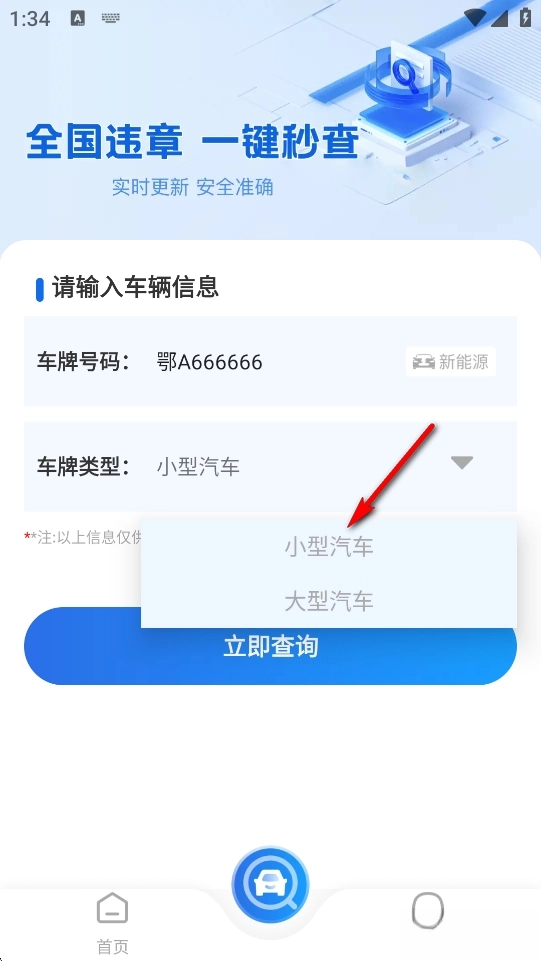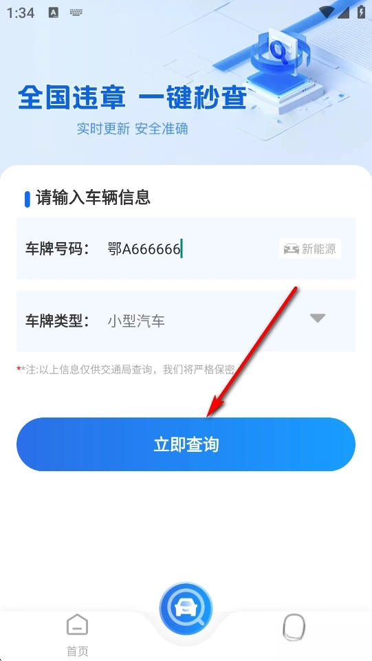 点击【立即查询】去查询违章